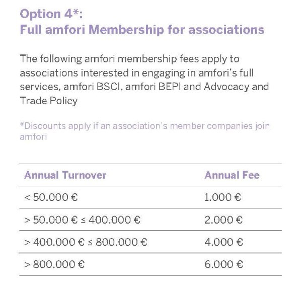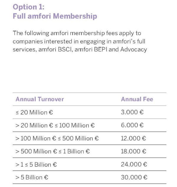 amfori BSCI不同会员与收费方式: